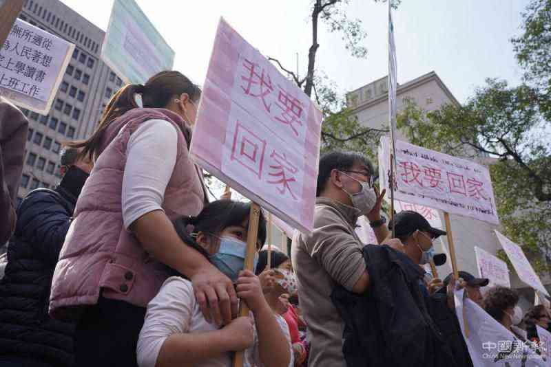 圖:滯留湖北臺胞的家屬早前在臺北陳情,要求臺當(dāng)局盡快接載湖北臺胞回家\資料圖片
