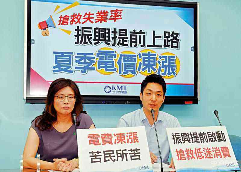 圖:國民黨立委鄭麗文、蔣萬安呼籲臺當局“三倍券”的發(fā)放時間應(yīng)從七月中旬提前至端午連假期間,幫助民眾渡過難關(guān)/中央社