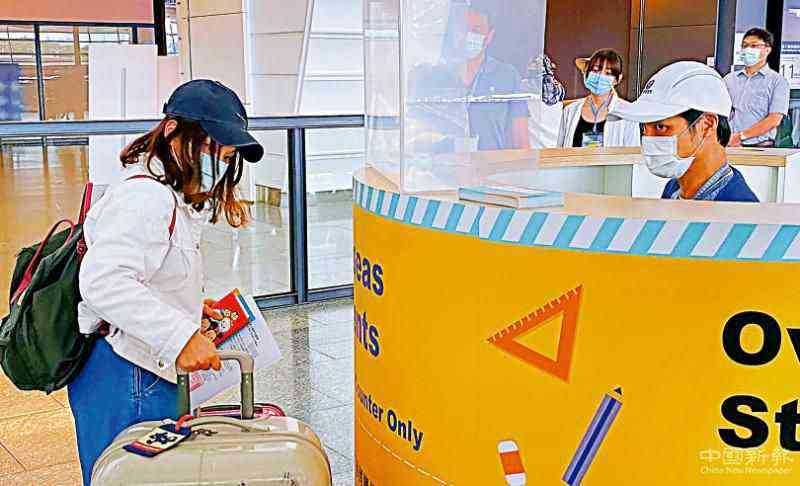 圖:26日,首批返臺外地學(xué)生抵桃園機(jī)場\中央社