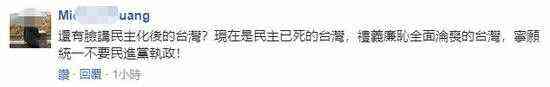 “還有臉講民主化后的臺灣?現(xiàn)在是民主已死的臺灣,禮義廉恥全面淪喪的臺灣,寧愿統(tǒng)一不要民進(jìn)黨執(zhí)政!”