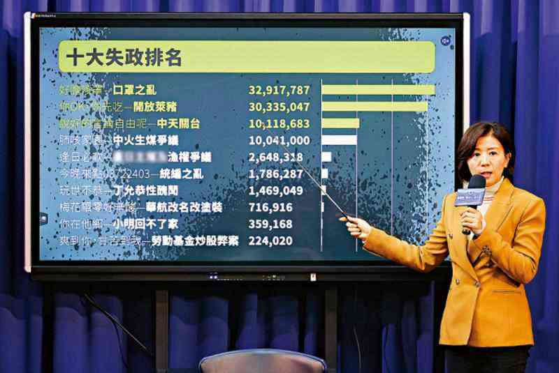 圖:國民黨30日上午舉行記者會(huì),公布臺當(dāng)局“十大失政排名”\中央社