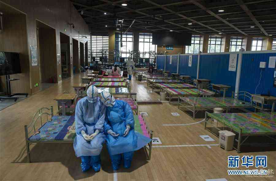3月10日,武昌方艙醫(yī)院最后一批痊愈病人共49人出艙。這是兩名青海醫(yī)療隊隊員等待出艙時小憩。 新華社記者 肖藝九 攝
