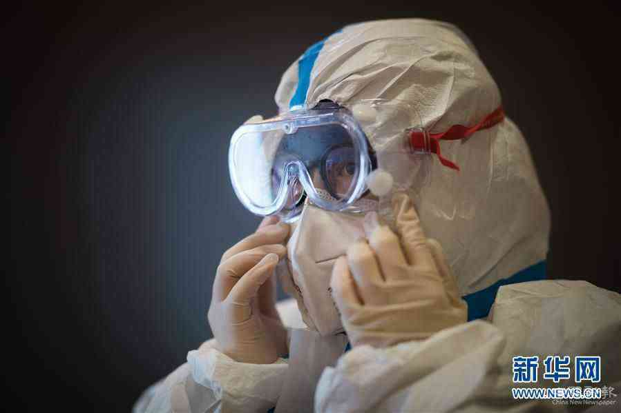 海軍軍醫(yī)大學(xué)醫(yī)療隊員在穿戴防護服(1月27日攝)。 新華社記者 肖藝九 攝