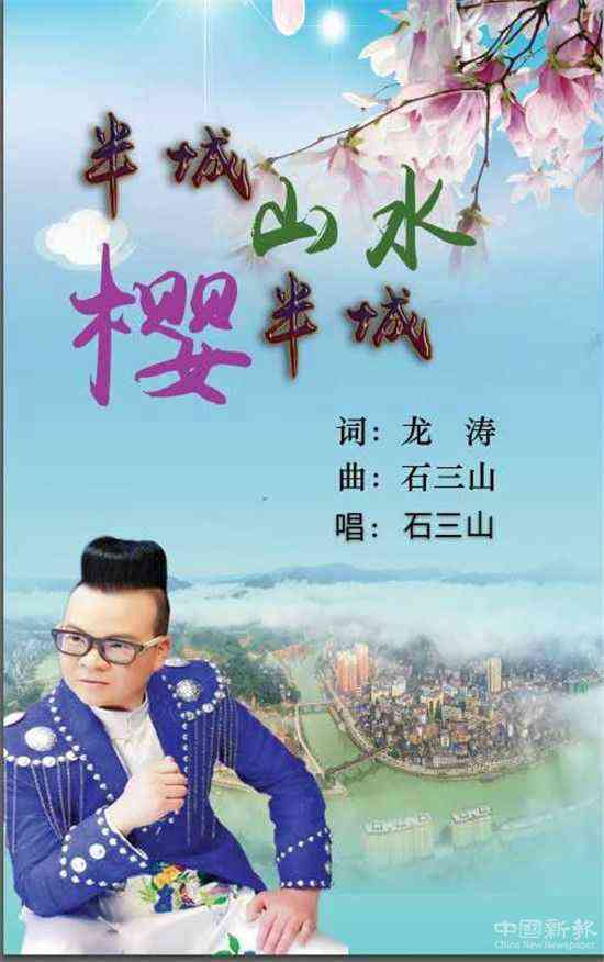 “2020年的初春,我收到了龍濤老師發(fā)給我一首新歌詞《半城山水半城櫻》,歌詞描述了貴州省黔東南苗族侗族自治州美麗錦屏的綠水青山,清水江的十里長廊,櫻花燦爛,蝴蝶翩翩,著實醉了一彎清江水。”石三山說。