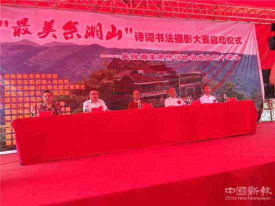 啟動(dòng)儀式在“金鐘獎(jiǎng)”獲獎(jiǎng)?wù)咴榫?,邵東市音協(xié)副主席劉東明的深情歌聲中拉開(kāi)了帷幕。“今天我們有幸集詩(shī)詞大咖、書(shū)道名家、攝影名流,齊聚佘湖山風(fēng)景名勝區(qū),你們將拈山水神韻,揮濃墨神筆,舉靈感鏡頭,必將創(chuàng)作出一首首膾炙人口的詩(shī)作,一幅幅行云流水的書(shū)法,一幀幀美輪美奐的光影,推動(dòng)佘湖山風(fēng)景名勝區(qū)的發(fā)展,正真把邵東市文化旅游名片打造成湘西南地區(qū)的一顆璀璨的明珠。”邵東市余田橋鎮(zhèn)黨委書(shū)記王小文在熱情洋溢的致辭中說(shuō)。