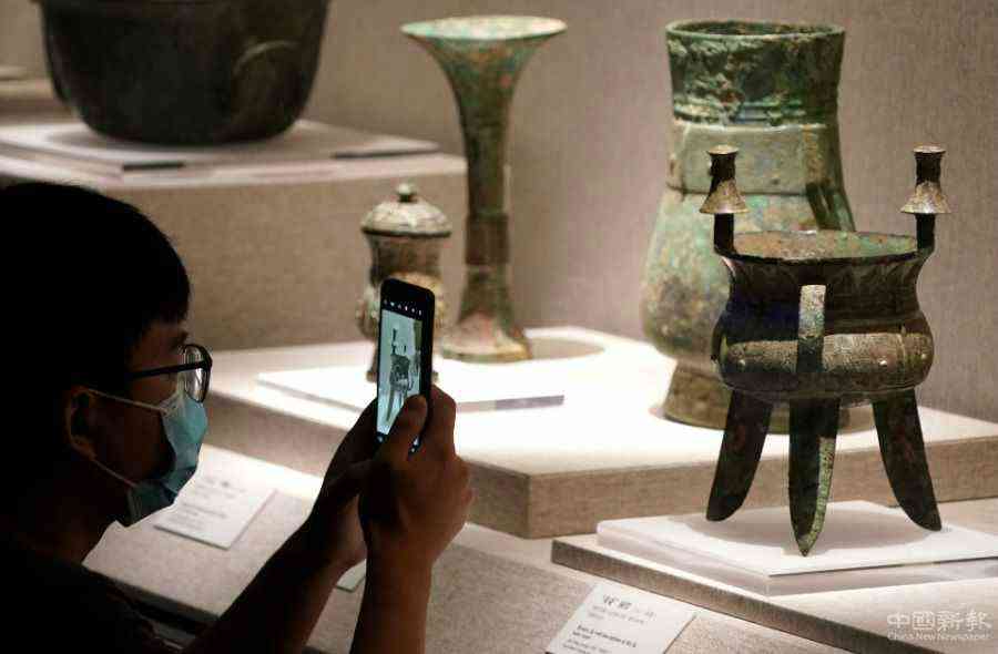 9月24日,參觀者在河南博物院主展館內(nèi)拍攝展品“獸面紋提梁銅卣”。新華社記者 李安 攝