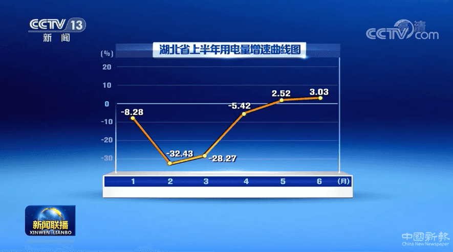 這是湖北省上半年用電量增速曲線。疫情沖擊下,用電量在2月極速下跌,從5月開始恢復(fù)正增長。三個月時間,黨中央舉全國之力,取得武漢保衛(wèi)戰(zhàn)、湖北保衛(wèi)戰(zhàn)決定性成果。同時,協(xié)同各方力量,從財政稅收、金融信貸、投資消費等多個方面,一攬子政策全力支持湖北經(jīng)濟社會發(fā)展。