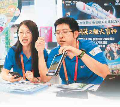 在服貿(mào)會(huì)上,一家旅游集團(tuán)工作人員通過直播向線上觀眾介紹旅游服務(wù)產(chǎn)品。