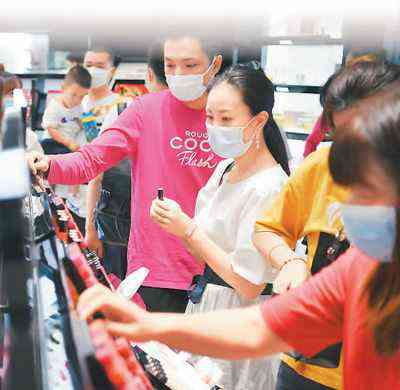 游客在海南三亞國(guó)際免稅城購(gòu)物。