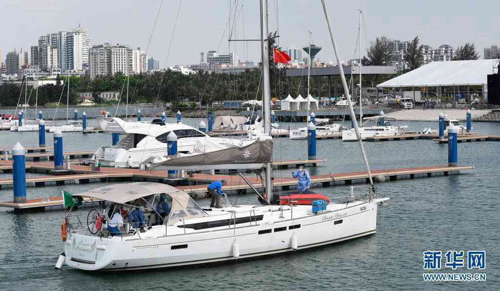 參加消博會(huì)游艇展的首艘境外游艇抵達(dá)海口,進(jìn)入??趪?guó)家帆船基地公共碼頭(4月30日攝)。新華社記者 楊冠宇 攝