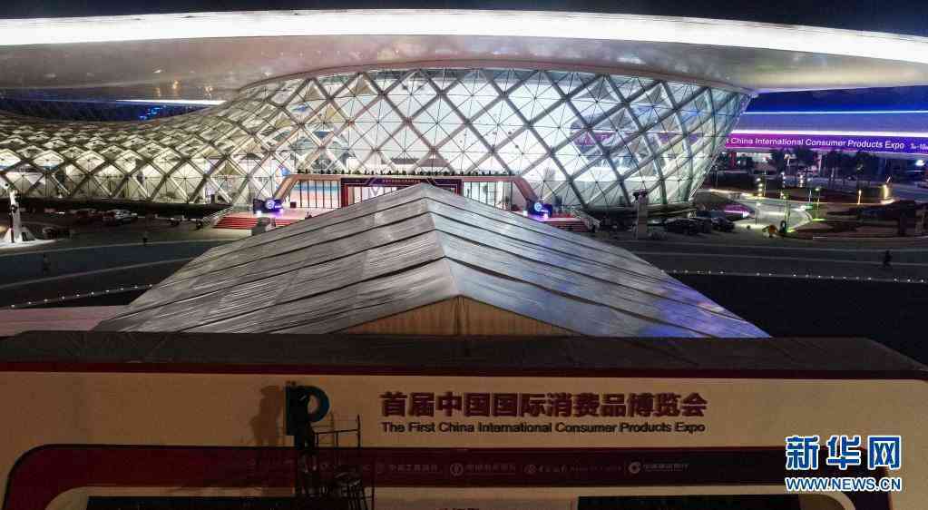 5月1日,工人在位于??诘暮D蠂?guó)際會(huì)展中心消博會(huì)展臺(tái)施工。新華社記者 蒲曉旭 攝