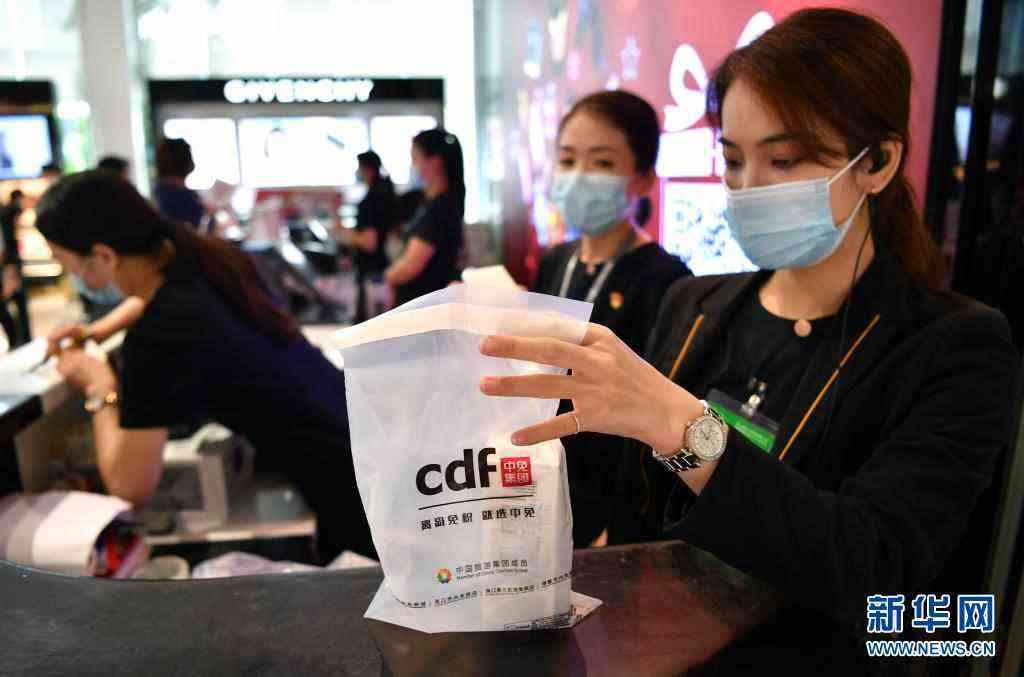 店員在海南博鰲免稅店為消費(fèi)者打包(4月19日攝)。新華社記者 郭程 攝