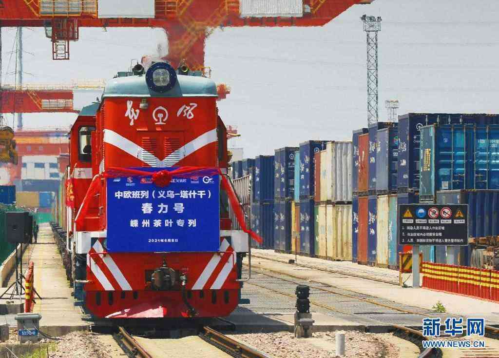 6月8日,滿載茶葉及茶產(chǎn)品的中歐班列從義烏西站啟程。