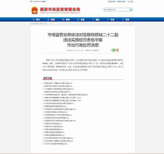 互聯(lián)網(wǎng)領域22起違法實施經(jīng)營者集中案行政處罰決定公布