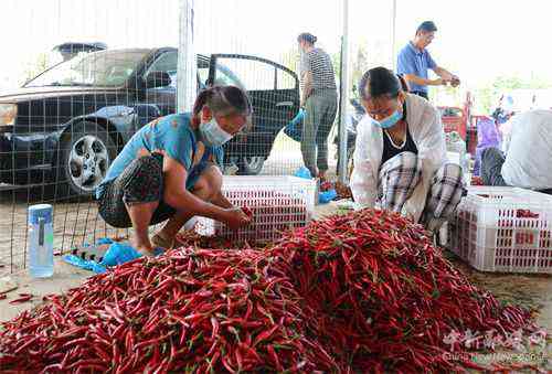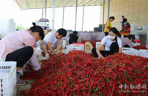 火紅的辣椒為村民們帶來豐收的喜悅。據(jù)了解,望城村1200畝辣椒基地種有小米辣椒、線椒等6個(gè)優(yōu)良品種,每畝田產(chǎn)辣椒3000公斤以上。由于品質(zhì)好,辣椒一上市就被搶購一空。基地跟美團(tuán)、盒馬、天貓等平臺合作,基地供貨,供不應(yīng)求?;孛慨€辣椒純收入在3000元以上,帶動(dòng)50多名村民就近就業(yè),人均年增收2萬多元。(特約記者 巢志斌 攝影報(bào)道)