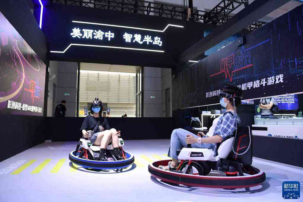 8月23日,觀眾在2021智博會上通過MR技術(shù)體驗機甲格斗游戲。