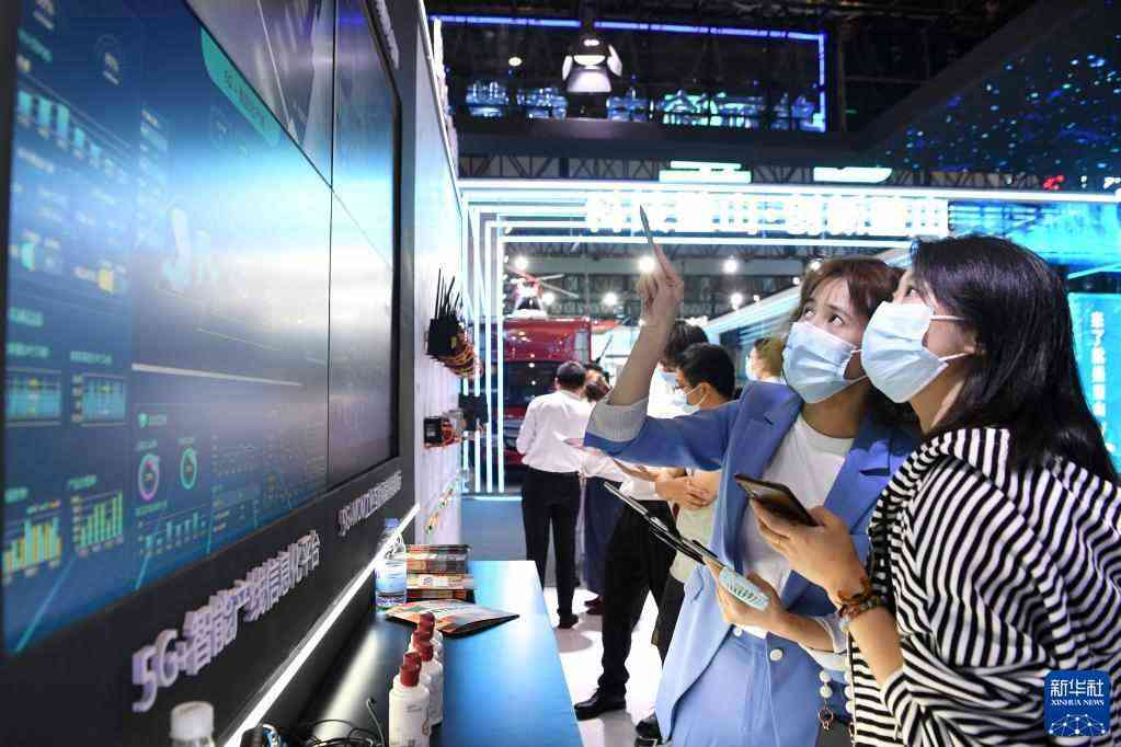 8月23日,在2021智博會現(xiàn)場,工作人員(前左)向觀眾介紹“5G+智能制造”的應(yīng)用。