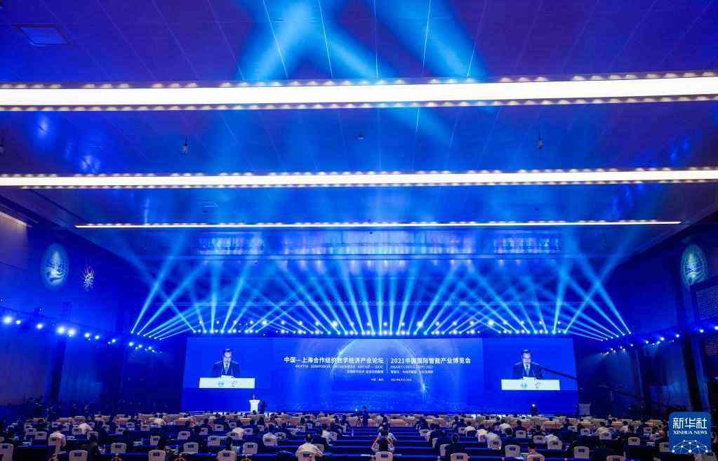 8月23日拍攝的2021中國國際智能產(chǎn)業(yè)博覽會開幕式現(xiàn)場。