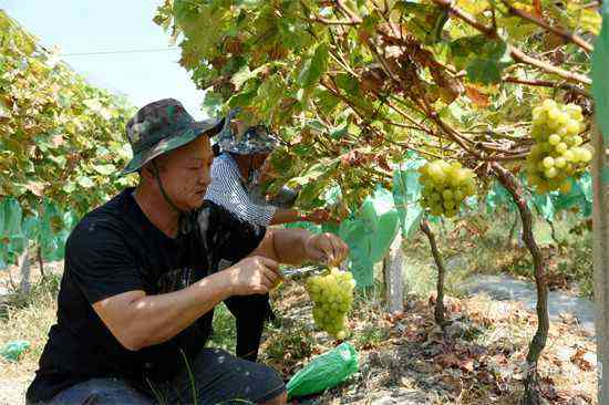 眼下正是葡萄銷售旺季,在六坪村整齊劃一的葡萄棚里,一排排葡萄樹架上,掛滿了一串串晶瑩剔透的陽光玫瑰,散發(fā)著獨(dú)特的清香,讓人垂延欲滴。工人們正忙著采摘客戶預(yù)定的葡萄。