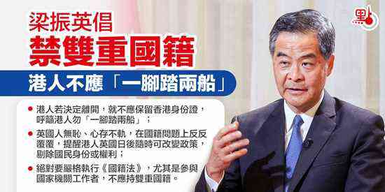 梁振英指,英國(guó)新BNO方案違反《中英聯(lián)合聲明》備忘錄,批評(píng)英國(guó)人無恥、心存不軌,在國(guó)籍問題上反反覆覆,提醒港人英國(guó)日后隨時(shí)可改變政策,剔除國(guó)民身份或權(quán)利。