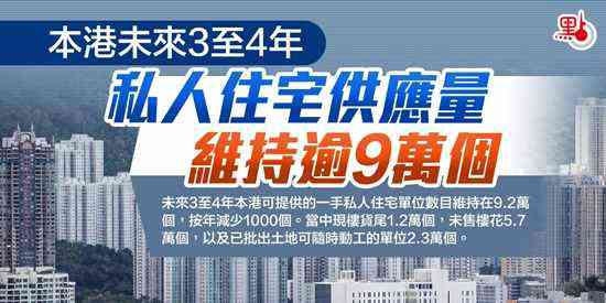 運(yùn)輸及房屋局今日(29日)公布,截至去年12月底的數(shù)據(jù)顯示,未來3至4年本港可提供的一手私人住宅單位數(shù)目維持在9.2萬個(gè),按年減少1000個(gè)。當(dāng)中現(xiàn)樓貨尾1.2萬個(gè),未售樓花5.7萬個(gè),以及已批出土地可隨時(shí)動(dòng)工的單位2.3萬個(gè)。