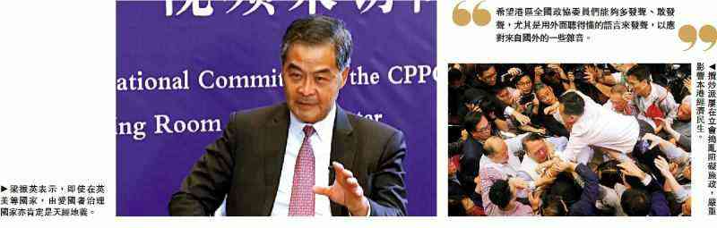 梁振英亦提及他出任特首時(shí),立法會(huì)的秩序就非常不好。政府的議案、財(cái)政預(yù)算案,或者成立創(chuàng)新科技局等,都被攬炒派議員“拉布”,還有議員將玻璃水杯摔向他的講臺(tái),這些對(duì)政府施政造成很大的障礙。