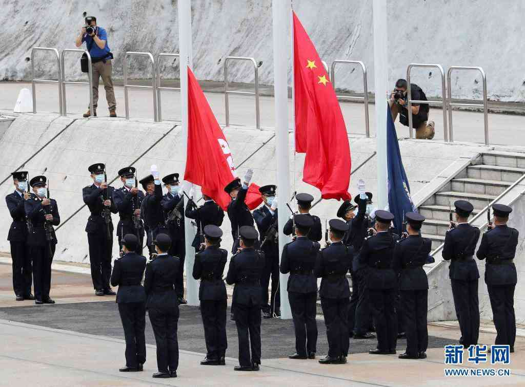 4月15日在香港警察學(xué)院拍攝的升旗儀式。新華社記者 李鋼 攝