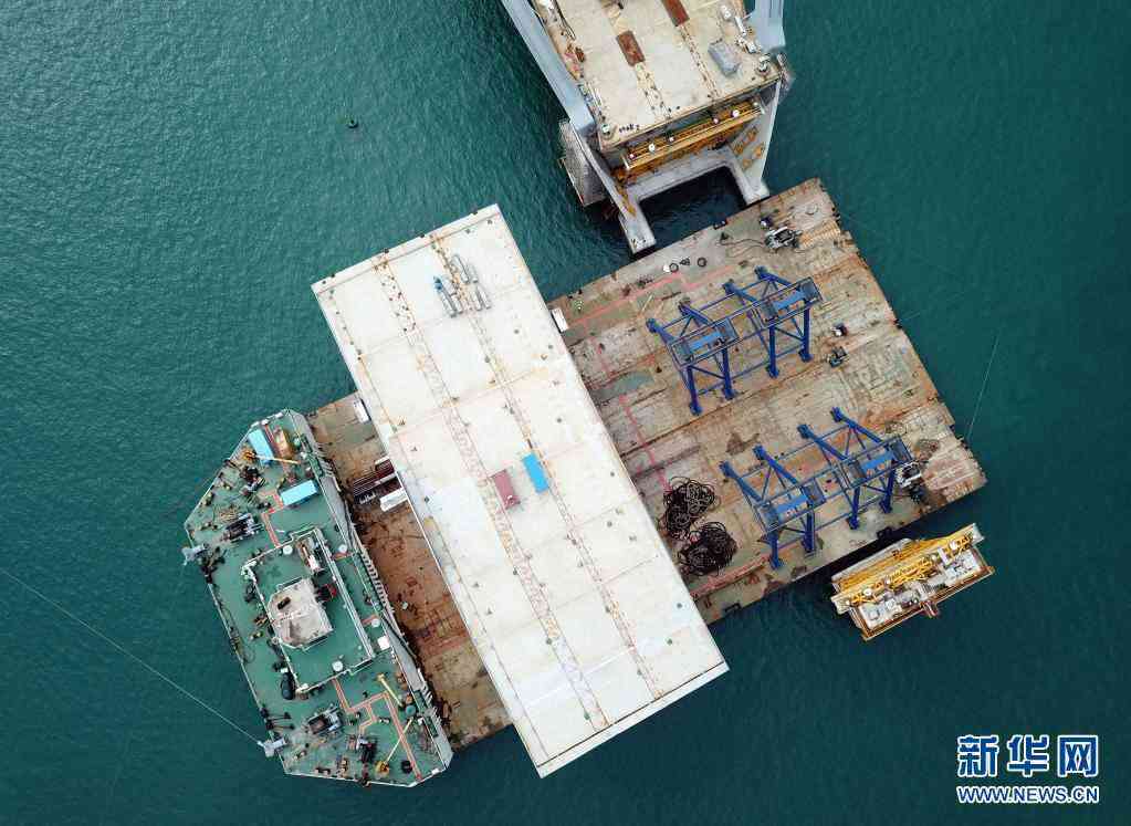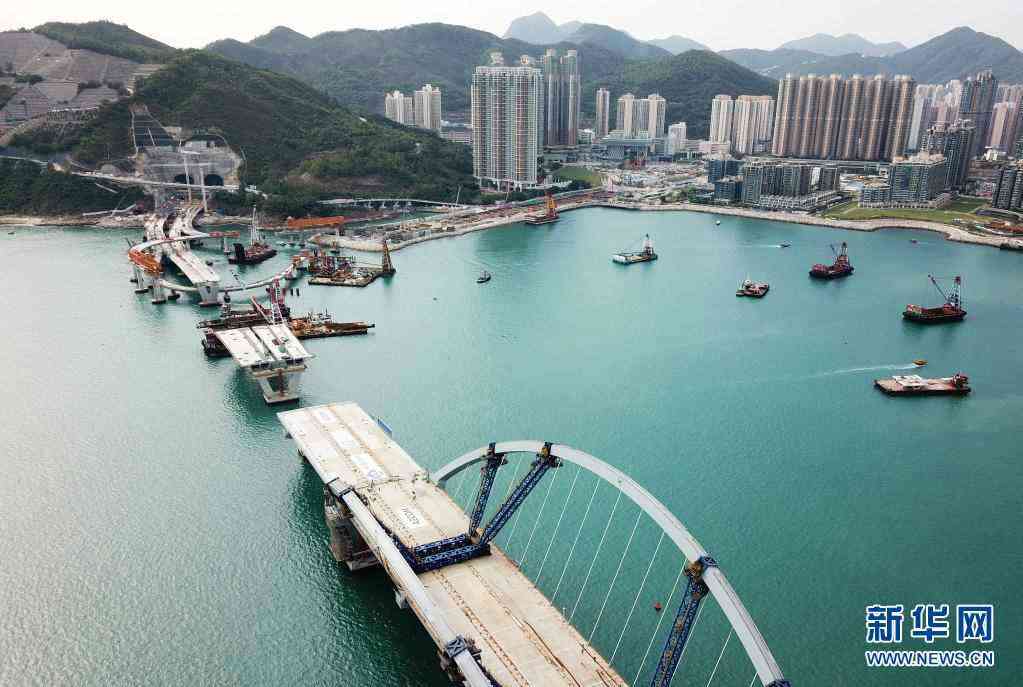 4月29日拍攝的香港將軍澳大橋施工現(xiàn)場(無人機(jī)照片)。
