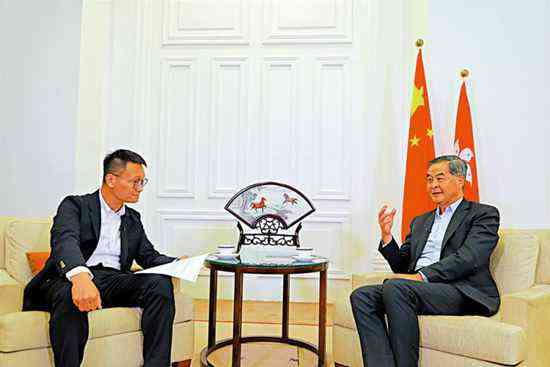圖:梁振英(右)接受馮煒光訪問(wèn),勉勵(lì)港人捉緊機(jī)遇,放眼大灣區(qū)。