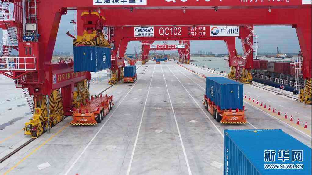 當(dāng)日,粵港澳大灣區(qū)首個全自動化碼頭廣州港南沙四期工程成功進(jìn)行實船聯(lián)合調(diào)試。這套自動化操作系統(tǒng)融合了北斗導(dǎo)航、5G通信、人工智能、云計算、大數(shù)據(jù)分析等先進(jìn)技術(shù),我國擁有完全自主知識產(chǎn)權(quán)。新華社發(fā)(廣州港集團供圖)