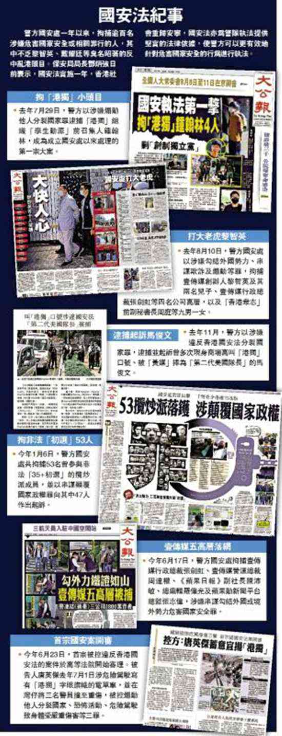 警方國安處成立后便迅速展開行動,于去年7月31日發(fā)出通緝令,以涉嫌煽動分裂國家罪名,通緝已潛逃海外的前“香港眾志”成員羅冠聰、“學(xué)生獨立聯(lián)盟”召集人陳家駒、“本土民主前線”召集人黃臺仰等亂港分子。又在8月10日以涉嫌勾結(jié)外國勢力、串謀欺詐及煽動等罪名,拘捕了壹傳媒創(chuàng)辦人黎智英及其兩名兒子、壹傳媒行政總裁張劍虹、“香港眾志”前副秘書長周庭等人,嚴正打擊了亂港勢力的囂張氣焰。