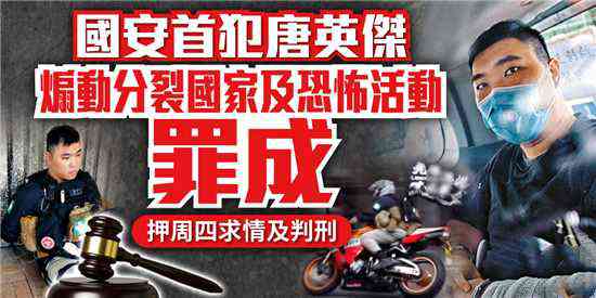 首宗被控干犯香港國安法的男被告唐英杰,早前被裁定一項(xiàng)煽動分裂國家罪,以及一項(xiàng)恐怖活動罪罪名成立。案件押至今早(29日)10時(shí)處理求情及判刑。