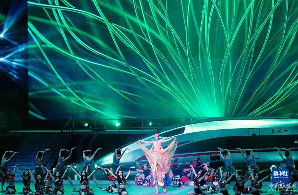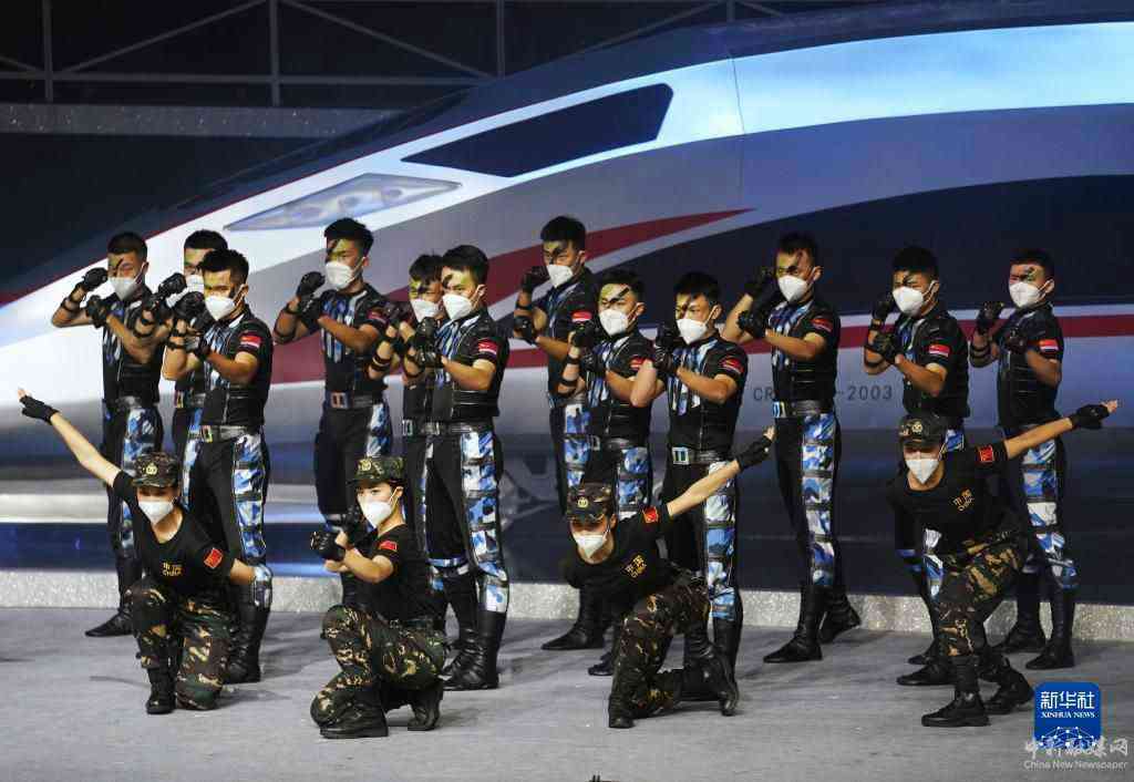 10月1日,在紅磡香港體育館,中國(guó)人民解放軍駐香港部隊(duì)文工團(tuán)演員在表演舞蹈。新華社記者 王申 攝