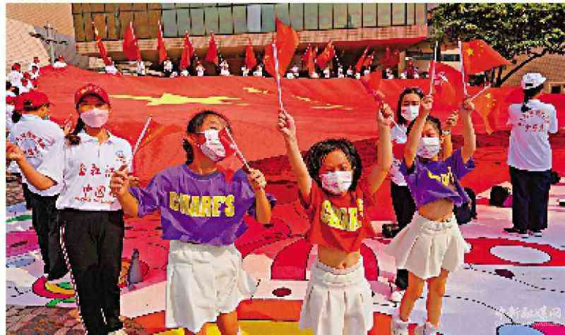 【大公報(bào)訊】在尖沙咀海濱,象征著全中國56個(gè)民族的56名護(hù)旗手,豪展30米巨型國旗。不遠(yuǎn)處,“我和我的祖國,一刻也不能分割。”耳熟能詳?shù)母枨鷤魅攵?,路邊揮舞著紅旗的市民隨聲應(yīng)和,在場的小朋友更即場清唱國歌,一句“我愛你中國”表達(dá)市民的心聲。