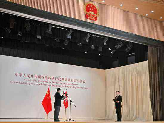 10月8日,政府在北角社區(qū)會(huì)堂舉行第四場(chǎng)區(qū)議員宣誓儀式。民政事務(wù)局局長(zhǎng)徐英偉監(jiān)誓。(中新社資料圖)