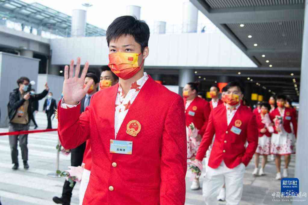 12月19日,內(nèi)地奧運健兒代表團(tuán)成員蘇炳添(前)在歡迎儀式上。