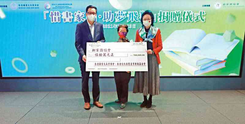 “惜書家園.助夢飛翔”捐贈(zèng)儀式昨日舉行,主禮嘉賓包括香港圖書文具業(yè)商會(huì)會(huì)長吳靜怡、香港文化創(chuàng)意產(chǎn)業(yè)發(fā)展基金會(huì)主席沈雪明、新家園協(xié)會(huì)總干事黃頌。
