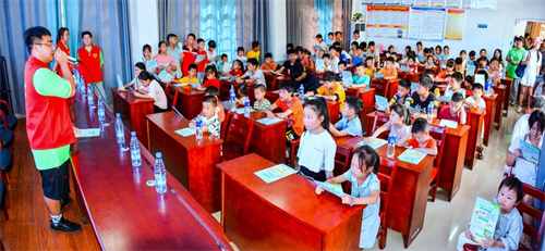 7月10日,新寧清江橋鄉(xiāng)桃花村,來自長沙的青年志愿者正在村部為該村小學(xué)生和兒童支教上課,進(jìn)行暑期防溺水安全知識教育。