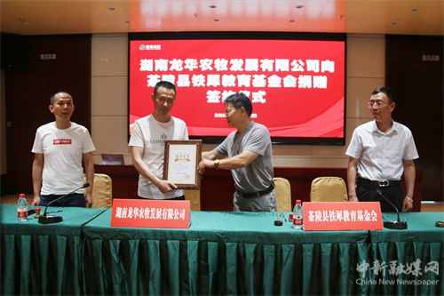 7月16日,湖南龍華農牧發(fā)展有限公司在茶陵舉行捐贈簽約儀式,湖南龍華農牧發(fā)展有限公司董事長龍秋華向茶陵縣鐵犀教育基金會捐贈50萬元,用于支持茶陵的教育事業(yè)。