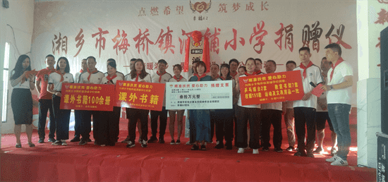 愛心捐贈(zèng)儀式上,幸福62團(tuán)隊(duì)向湘鄉(xiāng)市梅橋鎮(zhèn)酒鋪小學(xué)捐贈(zèng)現(xiàn)金30萬元將用于酒鋪學(xué)校綜合樓和校園維修改造建設(shè),與此同時(shí)幸福62團(tuán)隊(duì)還向酒鋪學(xué)校捐贈(zèng)了2個(gè)乒乓球臺(tái)及教室書架7套,為155名學(xué)生捐贈(zèng)了新的校服和文化用品,;湘郡未來實(shí)驗(yàn)學(xué)校1801班和美香閣旗袍等愛心單位為學(xué)校送來一批課外書籍。