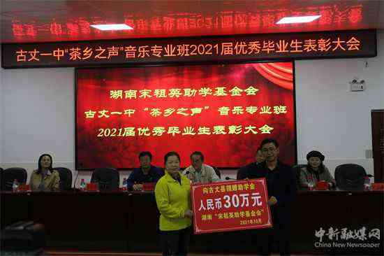 在表彰大會上,宋祖英助學(xué)基金會對古丈一中“茶鄉(xiāng)之聲”音樂專業(yè)班2021屆18名優(yōu)秀畢業(yè)生進(jìn)行了表彰獎(jiǎng)勵(lì),共計(jì)發(fā)放獎(jiǎng)金50000元。與此同時(shí),給古丈縣捐贈助學(xué)金30萬元,助推古丈教育事業(yè)發(fā)展。