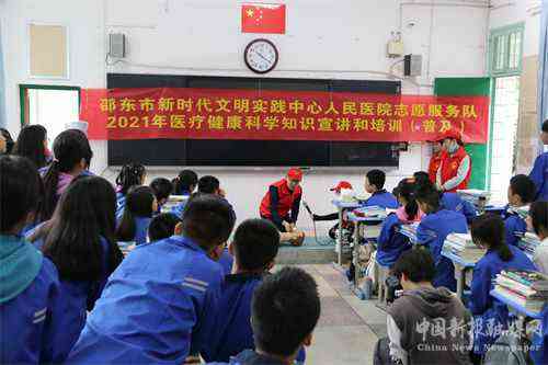 圖為邵東市新時(shí)代文明實(shí)踐中心人民醫(yī)院志愿服務(wù)隊(duì)健康宣講進(jìn)校園