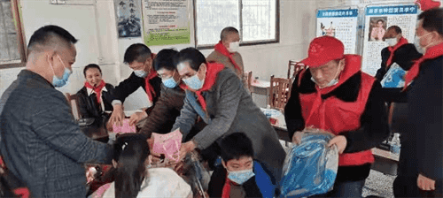 湘鄉(xiāng)市我來幫志愿者協(xié)會負(fù)責(zé)人和領(lǐng)導(dǎo)們一起將愛心物資捐給孩子們