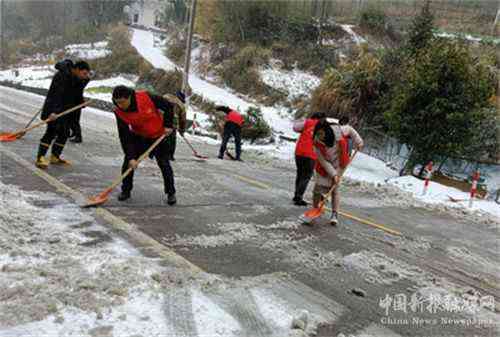 為確保道路暢通,方便行人出行,12月26日一大早,鎮(zhèn)黨委書記劉艷、鎮(zhèn)長(zhǎng)歐志成帶領(lǐng)機(jī)關(guān)干部巡查路面,設(shè)立警示牌,下午組織機(jī)關(guān)干部志愿者隊(duì)伍,拿著工業(yè)鹽、鏟子等清雪工具,來到長(zhǎng)樂村和鄧家鋪交界處清理冰雪。由于此次降雪時(shí)間長(zhǎng),路面積雪被車輛、行人踩壓,變成堅(jiān)硬的冰雪,使清雪工作難度加大。但工作人員依然頂著寒風(fēng),全力清理路面的冰雪。