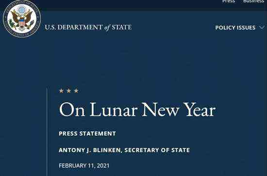 美國務(wù)卿布林肯發(fā)新聞公報(bào)拜年