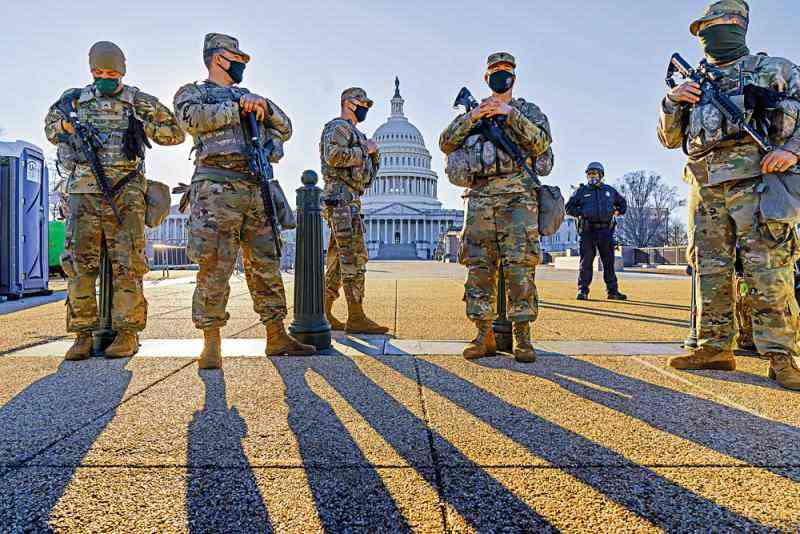 圖:3日,國民警衛(wèi)隊和國會警察在國會山嚴(yán)加戒備。\美聯(lián)社