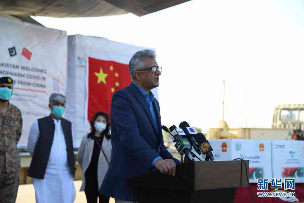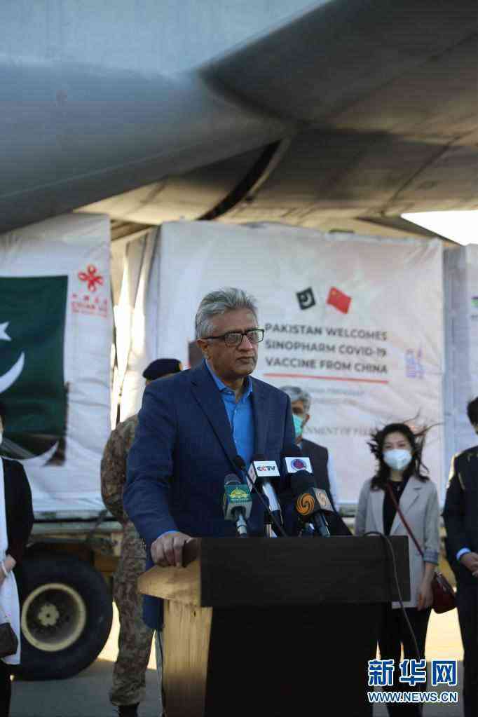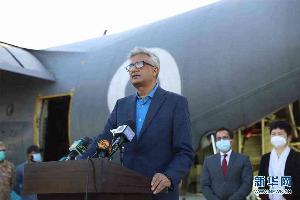 3月31日,巴基斯坦政府采購的兩批中國新冠疫苗交付儀式在努爾汗空軍基地舉行。巴政府采購的首批中國康希諾新冠疫苗和首批中國國藥集團(tuán)新冠疫苗分別于30日晚和31日運(yùn)抵巴基斯坦。圖為巴基斯坦負(fù)責(zé)國家衛(wèi)生服務(wù)的總理特別助理費(fèi)薩爾·蘇丹(前)在巴政府采購的兩批中國新冠疫苗交付儀式上講話。新華社記者 蔣超 攝