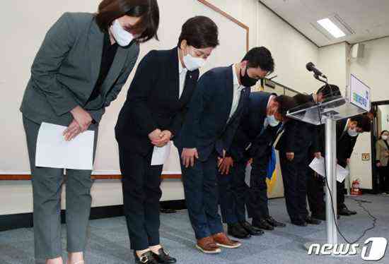 韓國執(zhí)政黨領(lǐng)導班子宣布辭職后,集體鞠躬