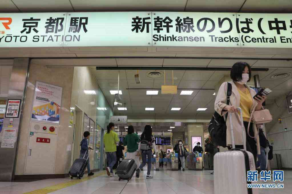 4月29日,戴口罩的乘客出入日本京都站新干線驗(yàn)票口。