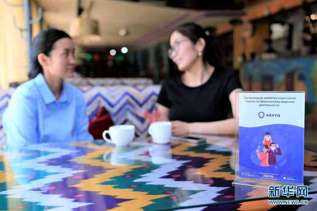 這是5月13日在哈薩克斯坦首都努爾蘇丹一家餐廳拍攝的健康碼小程序推廣說明。